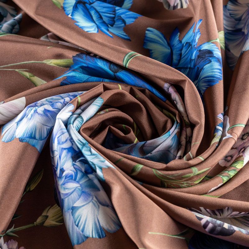 Крепдешин натуральный К32-244 молочный шоколад принтованный в Санкт-Петербурге