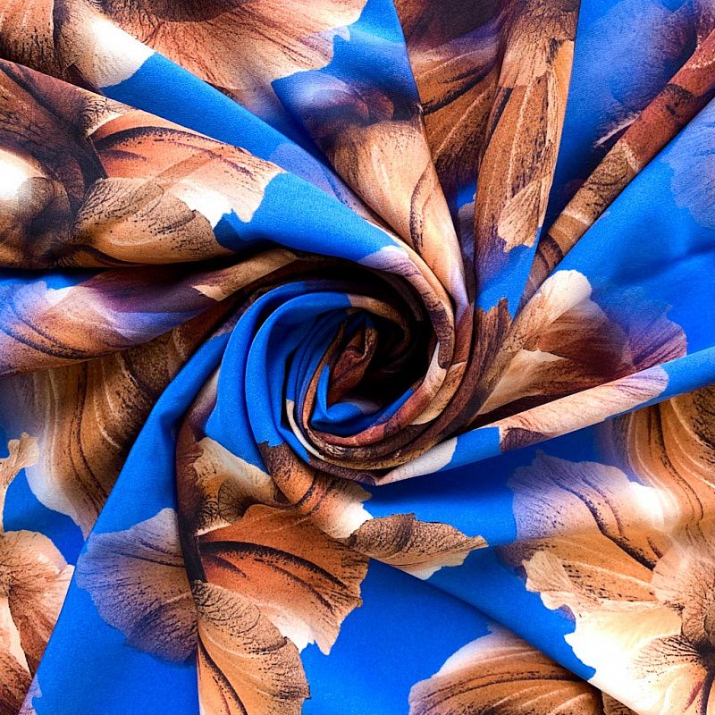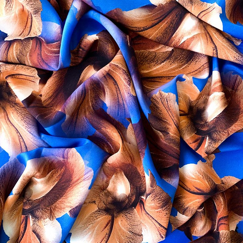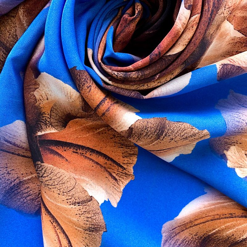 Крепдешин натуральный К32-373 лазурно-синий принтованный в Санкт-Петербурге