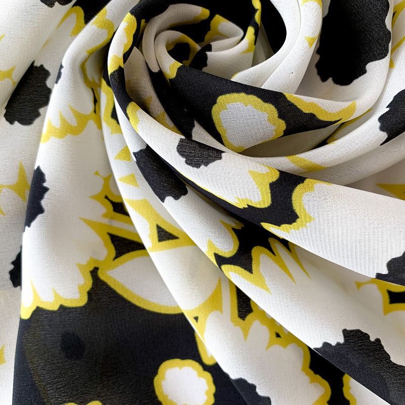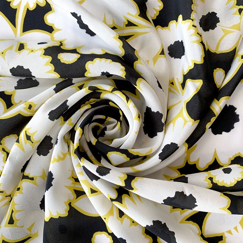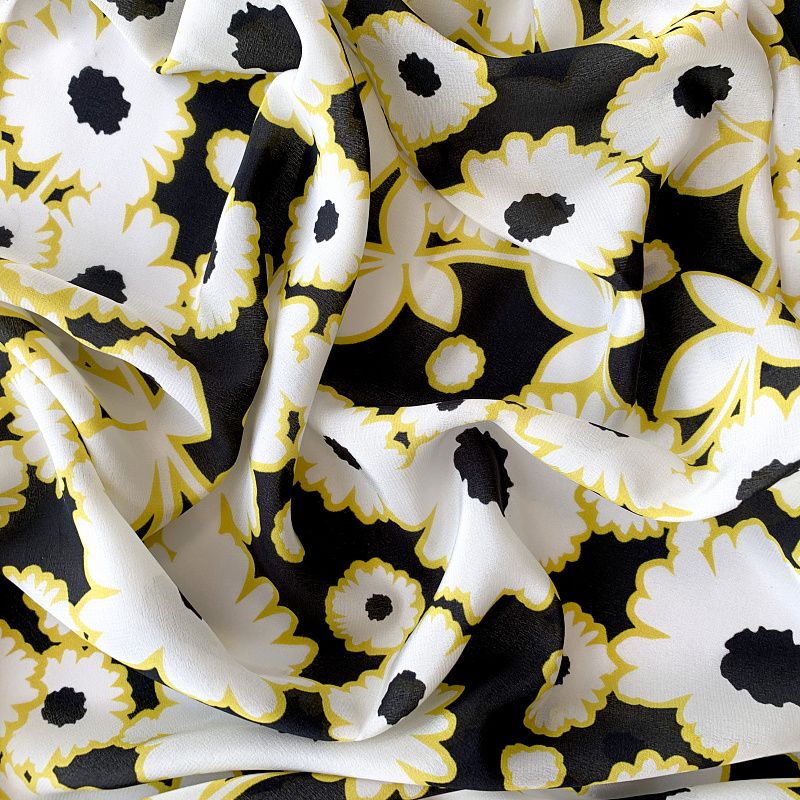Крепдешин натуральный К32-374 черный принтованный в Санкт-Петербурге