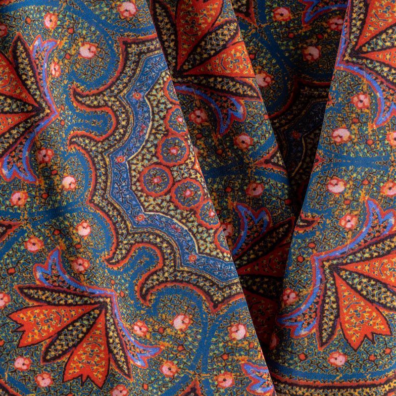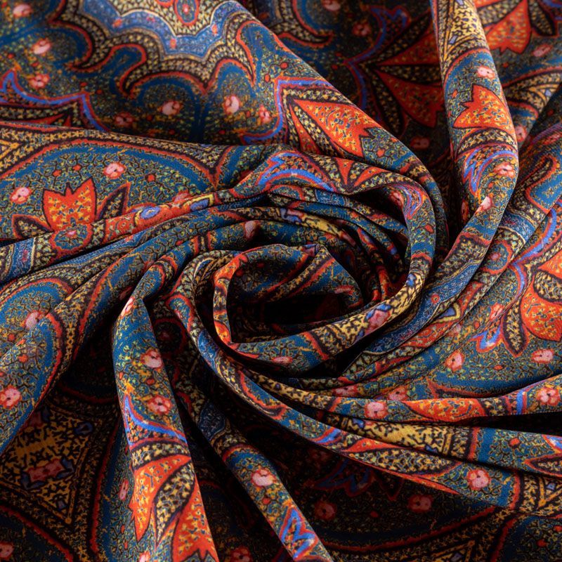Крепдешин натуральный К32-382 сине-зеленый принтованный в Санкт-Петербурге