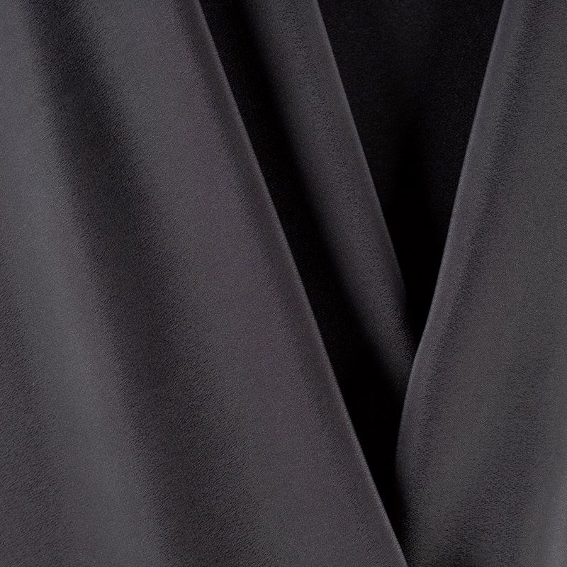 Шелковый крепдешин глубокого черного цвета, тонкий, легкий, фактурный, приятный на ощупь. Ткань слегка просвечивает, можно использовать подклад. Прекрасно будет смотреться в платье, юбке, тунике, рубашке или блузке.