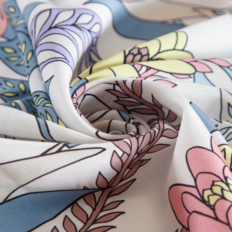 Крепдешин шелковый 028-14709 айвори принтованный в Санкт-Петербурге