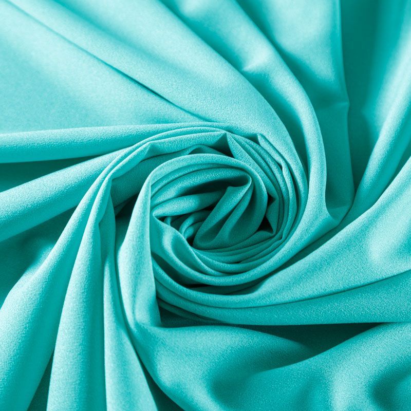 Крепдешин мятно-бирюзового оттенка, тонкий, легкий, фактурный, приятный на ощупь. Очень пластичный, тянется за счет эластана в составе, прекрасно драпируется и струится. Ткань слегка просвечивает, можно использовать подклад. Идеально будет смотреться в платье, юбке, тунике, рубашке или блузке.