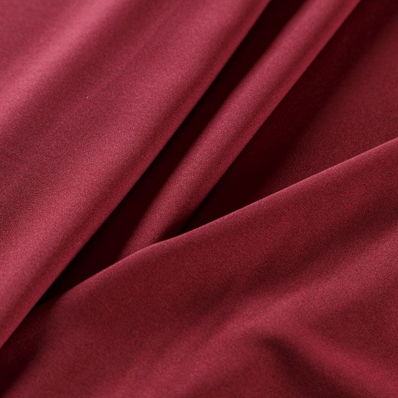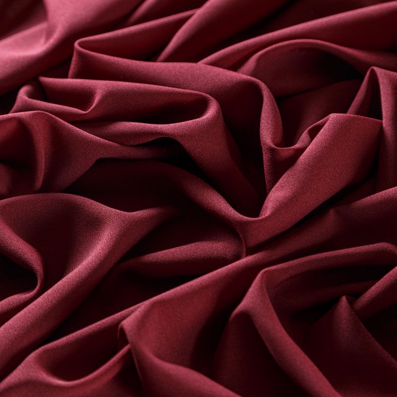 Крепдешин бордового оттенка, тонкий, легкий, фактурный, приятный на ощупь. Очень пластичный, тянется за счет эластана в составе, прекрасно драпируется и струится. Ткань слегка просвечивает, можно использовать подклад. Идеально будет смотреться в платье, юбке, тунике, рубашке или блузке.