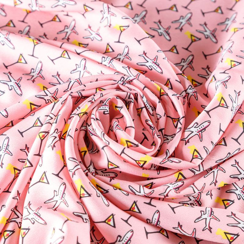 Крепдешин синтетический 029-08062 розовый принтованный в Санкт-Петербурге