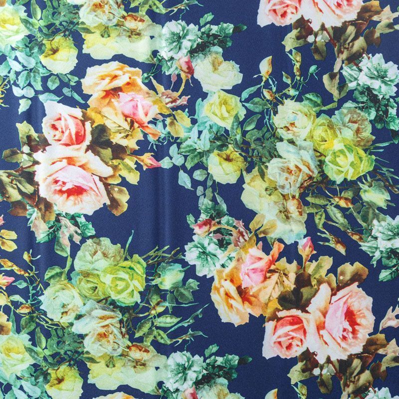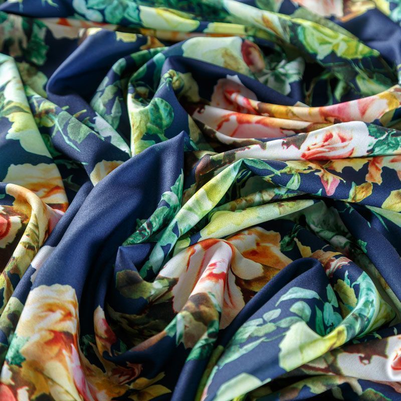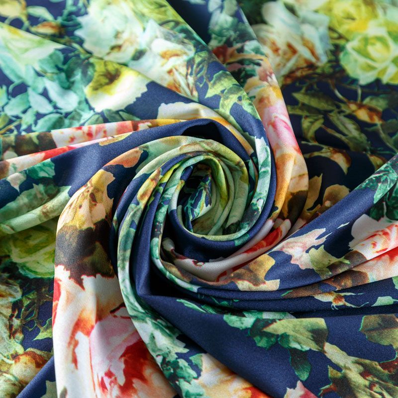 Крепдешин синтетический 029-08354 темно-синий принтованный в Санкт-Петербурге