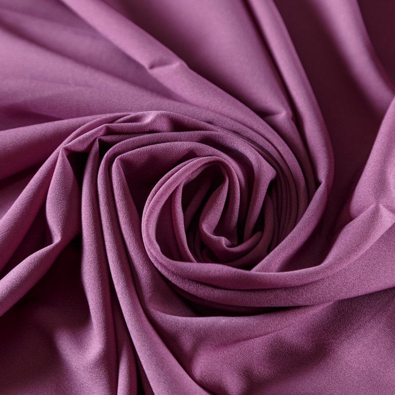 Крепдешин сиреневого оттенка, тонкий, легкий, фактурный, приятный на ощупь. Очень пластичный, тянется за счет эластана в составе, прекрасно драпируется и струится. Ткань слегка просвечивает, можно использовать подклад. Идеально будет смотреться в платье, юбке, тунике, рубашке или блузке.