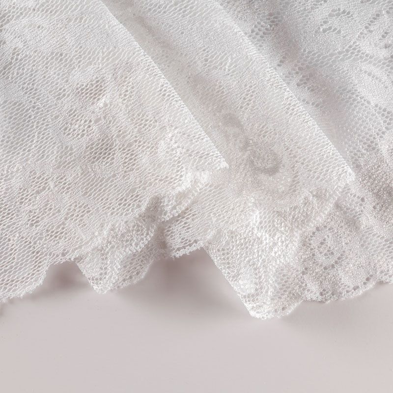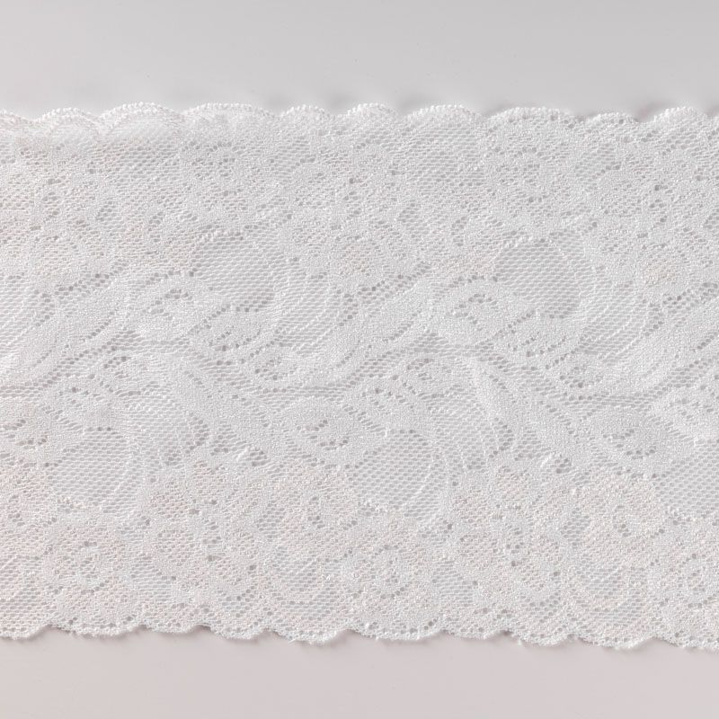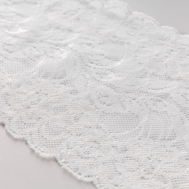 Эластичное кружево сочетает в себе мягкость, прочность и красоту, благодаря своей упругости оно долго не теряет первоначальную форму. Используется для пошива нижнего белья, а так же применяется как отделочный декор в одежде.