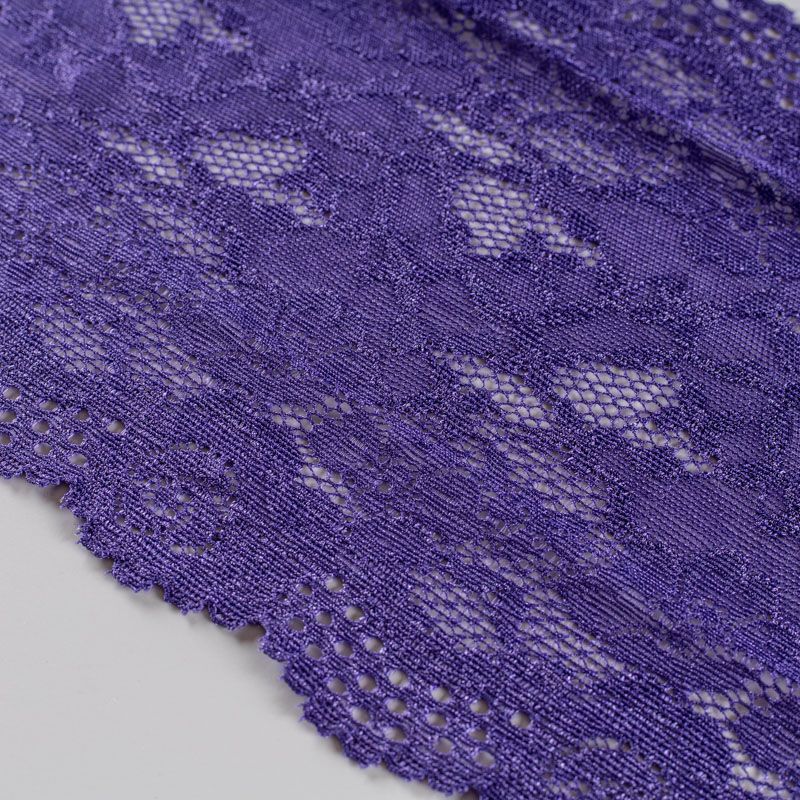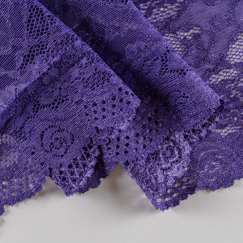 Эластичное кружево сочетает в себе мягкость, прочность и красоту, благодаря своей упругости оно долго не теряет первоначальную форму. Используется для пошива нижнего белья, а так же применяется как отделочный декор в одежде.