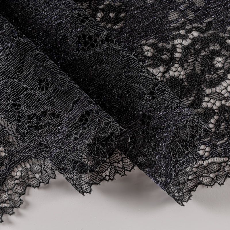 Эластичное кружево сочетает в себе мягкость, прочность и красоту, благодаря своей упругости оно долго не теряет первоначальную форму. Используется для пошива нижнего белья, а так же применяется как отделочный декор в одежде.