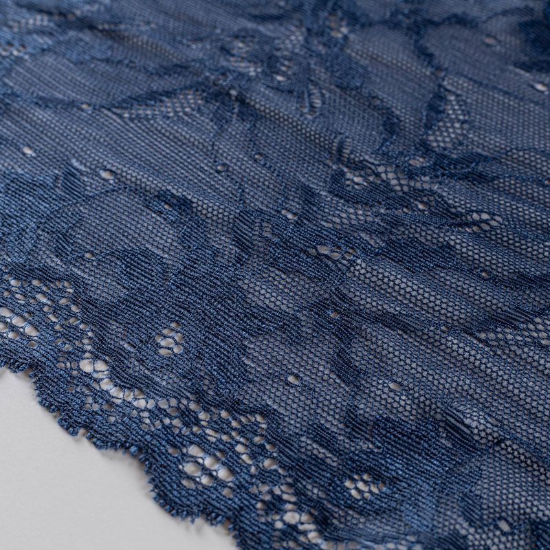 Эластичное кружево сочетает в себе мягкость, прочность и красоту, благодаря своей упругости оно долго не теряет первоначальную форму. Используется для пошива нижнего белья, а так же применяется как отделочный декор в одежде.