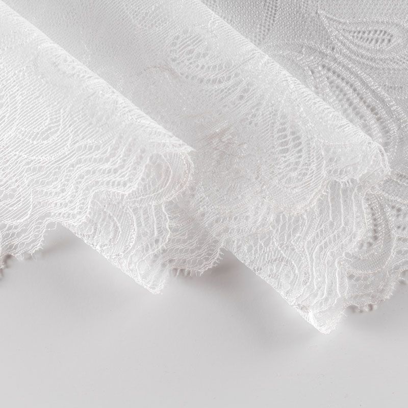Эластичное кружево сочетает в себе мягкость, прочность и красоту, благодаря своей упругости оно долго не теряет первоначальную форму. Используется для пошива нижнего белья, а так же применяется как отделочный декор в одежде.