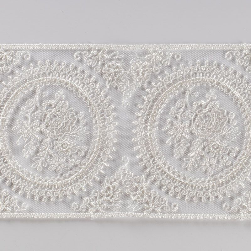 Кружево вышивка на сетке 93 мм Ф01-0046 молочный в Санкт-Петербурге