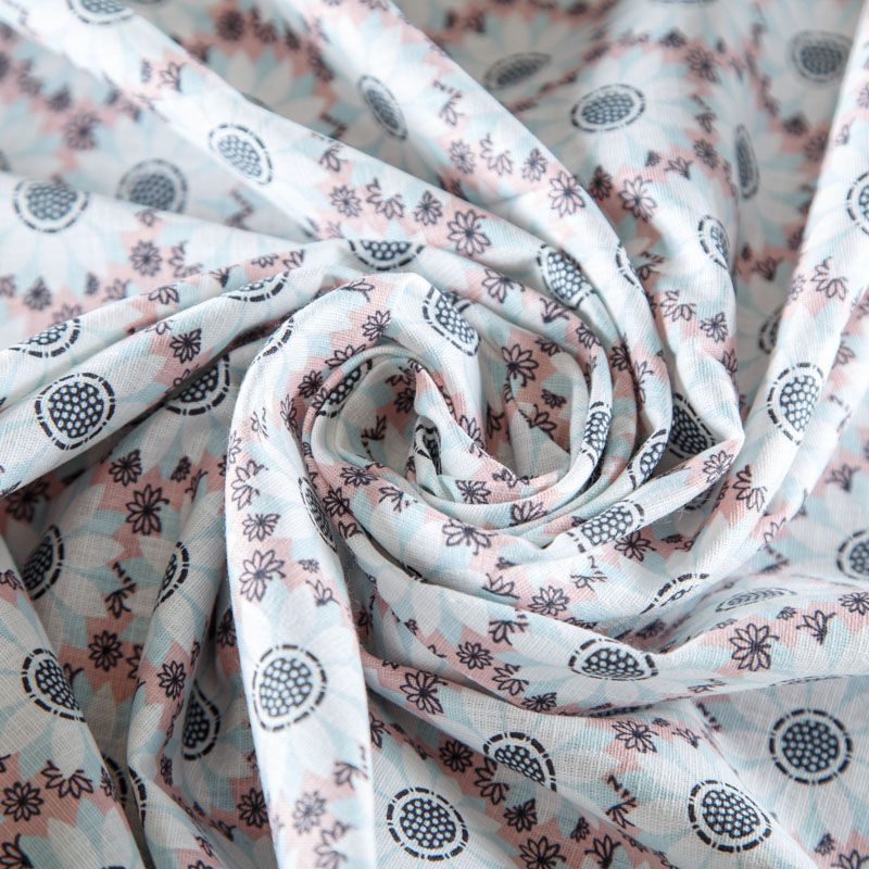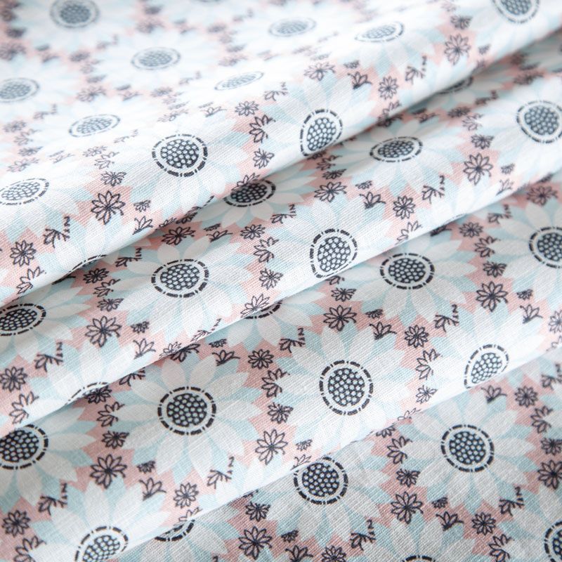 Лен натуральный 035-07870 выбеленный голубой принтованный в Санкт-Петербурге