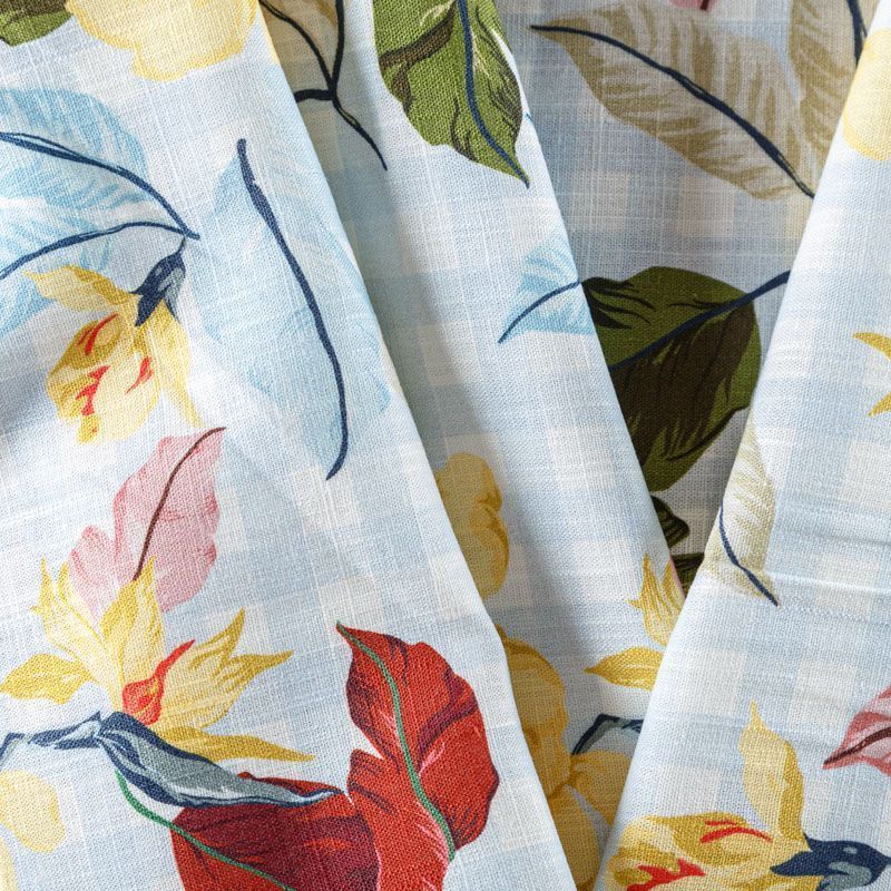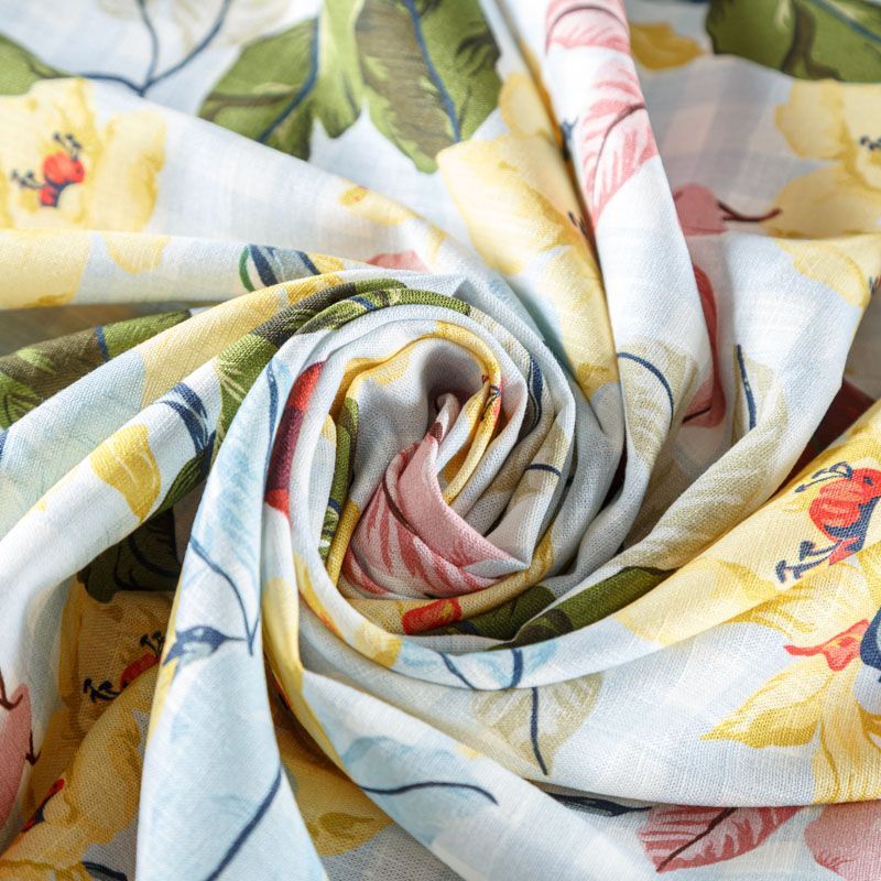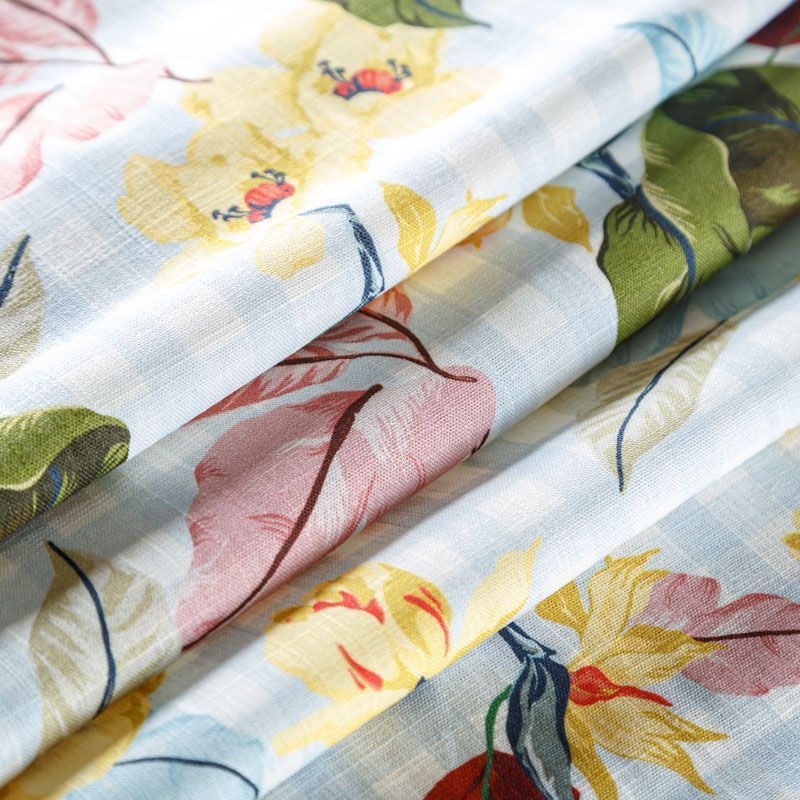 Льняная плательно-рубашечная ткань с ярким цветочным принтом на фоне бело-голубой клетки. Материал прочный, с выразительной матовой рельефной поверхностью, полотняным плетением, хорошо держит форму, тянется за счет эластана в составе, мягкий на ощупь, пластичный, отлично драпируется. Прекрасно подойдет для пошива летних платьев, сарафанов, юбок, рубашек, брюк и шорт.