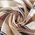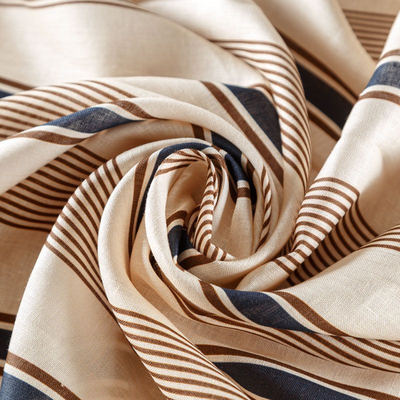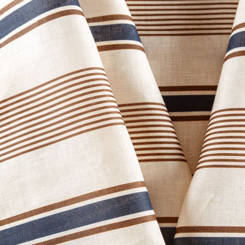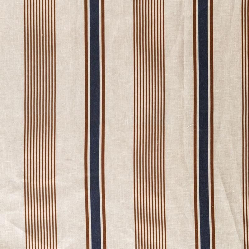 Итальянский плательно-рубашечный лен средней плотности в вертикальные разноразмерные полоски в сине-коричневом гамме. Ткань прочная, имеет матовую рельефную поверхность и полотняное переплетение, отлично держит форму, слегка просвечивает, пластичная, комфортная в изделии. Отлично подойдет для пошива для летних костюмов, рубашек, туник, платьев, сарафанов, юбок, жакетов, брюк или шорт.