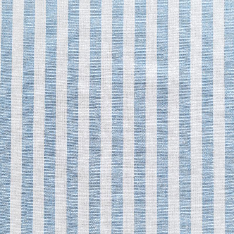 Итальянский плательно-рубашечный лен белого цвета в голубую вертикальную полоску. Ткань прочная, имееет на ощупь приятную, гладкую поверхность, а визуально - выраженный рельеф и полотняное переплетение, пластичная, хорошо драпируется, непрозрачная. Подойдет для пошива широких брюк, рубашек, туники, юбок, платьев, сарафанов, топов, комбинезонов.