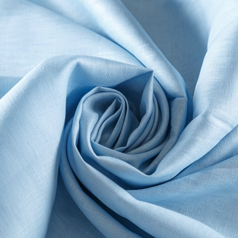 Итальянский костюмно-плательный лен голубого оттенка. Ткань прочная, имееет на ощупь приятную, гладкую поверхность, а визуально - выраженный рельеф и полотняное переплетение, держит форму, пластичная. Подойдет для пошива костюмов, брюк, шорт, юбок, платьев, рубашек, сарафанов, топов, комбинезонов, жакетов, кардиганов.