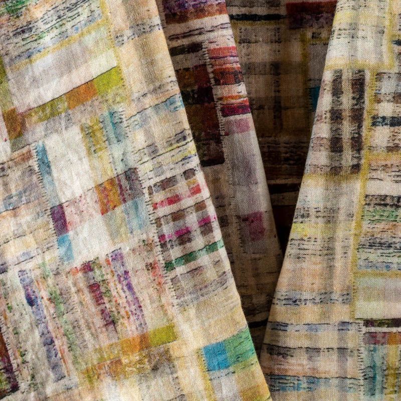 Плательно-рубашечный лен цвета хаки с абстрактным многоцетным принтом. Ткань легкая, средней плотности, поверхность матовая. Приятная на ощупь, хорошо держит форму, немного тянется. Отличный вариант для летних платьев, сарафанов, рубашек, брюк или шорт.