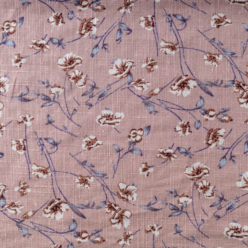Прочный, выразительная матовая рельефная поверхность, полотняное переплетение, хорошо держит форму, мягкий на ощупь, пластичный, отлично драпируется. Прекрасно подойдет для пошива летних платьев, сарафанов, юбок, рубашек, брюк и шорт. Льняная плательная ткань с мелким цветочным принтом.