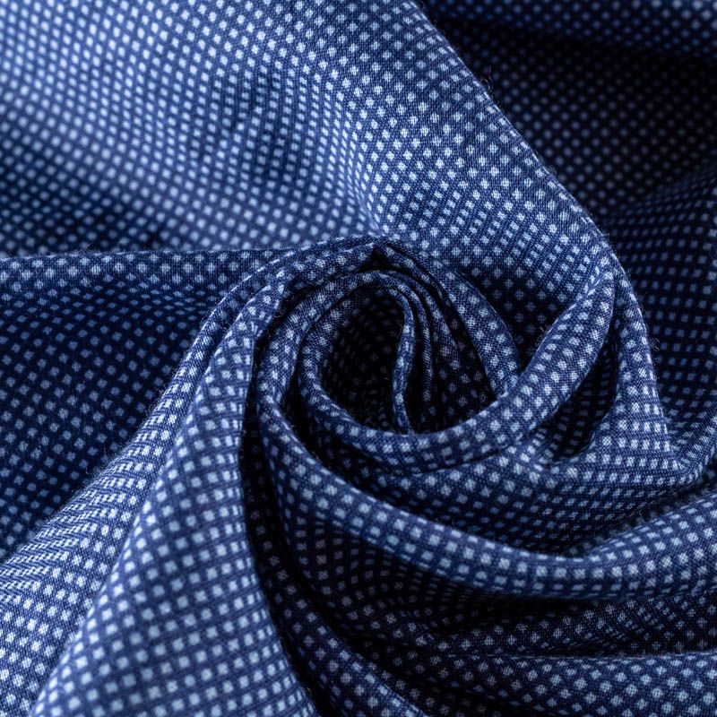 Плательно-рубашечный лен с мелким геометрическим рисунком. Ткань легкая, средней плотности, поверхность матовая. Приятная на ощупь, хорошо держит форму, немного тянется. Отличный вариант для летних летящих платьев, сарафанов, рубашек.