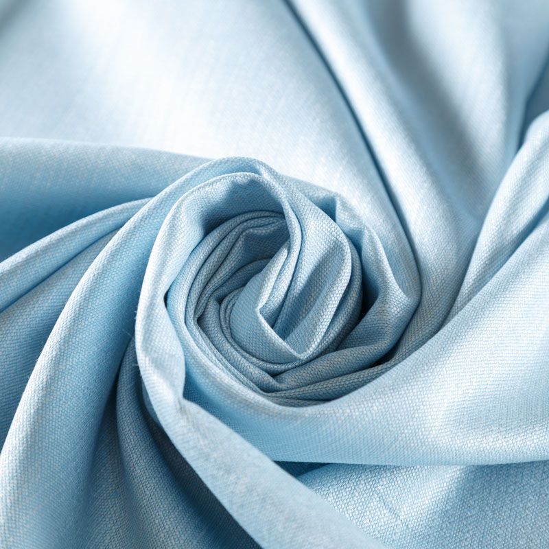 Итальянский плательно-костюмный лен с добавлением шелка в голубом оттенке. Материал имеет гладкую, шелковистую поверхность с едва заметным лоском, пластичный, хорошо драпируется. Ткань режется купоном по длине рулона, в нижней части купона материал декорирован мережкой, которая при крое может стать декоративным элементом в изделии. Лен подойдет для пошива платья, сарафана, жакета, юбки, брюк.
