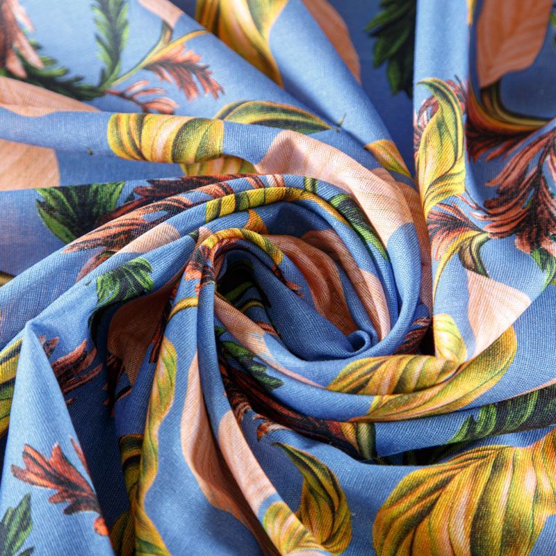 Лен-вискоза 035-07875 голубой принтованный в Санкт-Петербурге