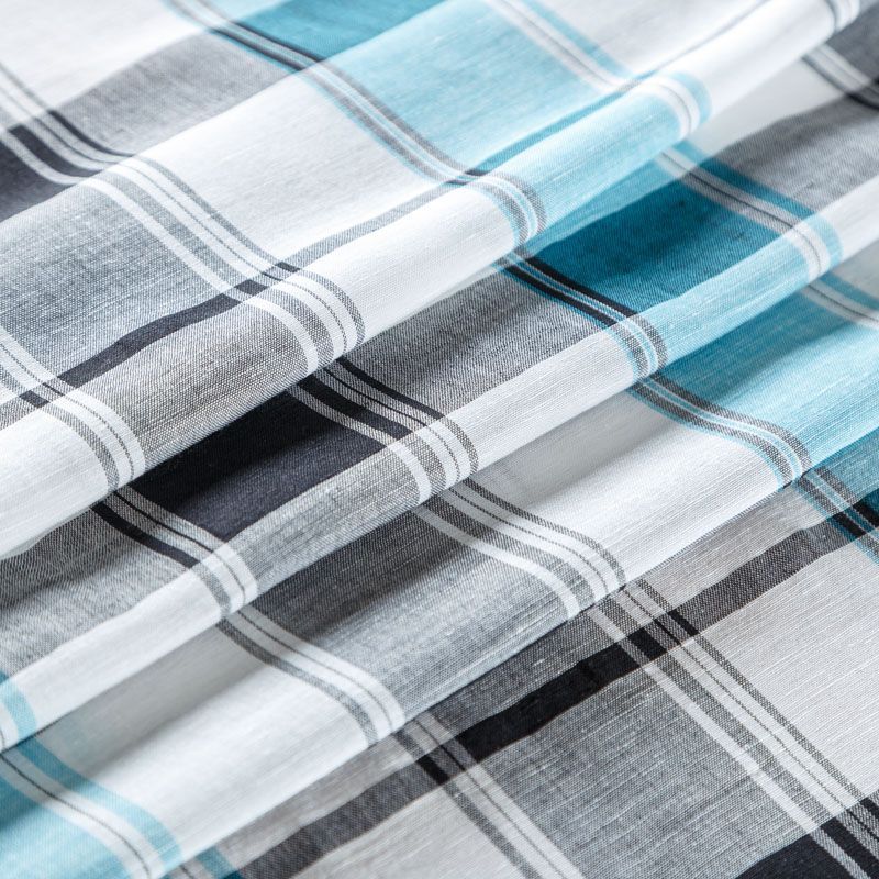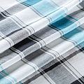 Льняная плательно-рубашечная ткань с добавлением вискозы белого цвета в серо-бирюзовую клетку. Материал прочный, с выразительной матовой рельефной поверхностью, полотняным плетением, хорошо держит форму, мягкий на ощупь, пластичный, отлично драпируется. Прекрасно подойдет для пошива летних платьев, сарафанов, юбок, рубашек, брюк и шорт.