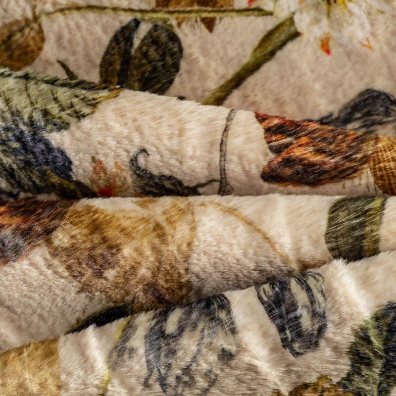 Искусственный мех, имитирующий кролика. На оливковом фоне оранжевые, молочные, желтые цветы. Красивое осеннее сочетание оттенков. Полотно мягкое, плюшевое, с коротким нежным ворсом. Имеет красивый лоск и приятную гладкую фактуру. Мех не мнется, не скатывается, долго сохраняет свой вид, очень уютный. Не тяжелый, отлично драпируется. Идеально подойдет для пошива шубки, мехового пальто, бомбера, куртки.