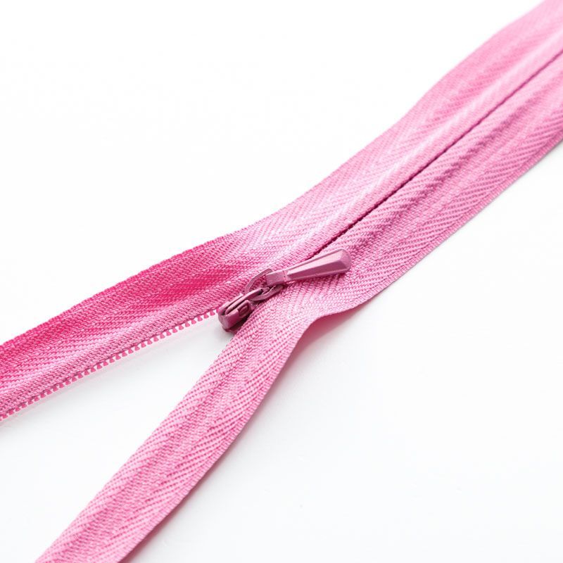Зубчики потайной молнии скрыты тесьмой, вся конструкция легко прячется в шов изделия. Такие застёжки лучше использовать на вещах из тонкой ткани: платьях, брюках, юбках, блузках. Миниатюрный бегунок сливается с тесьмой и почти невиден для глаз. Зубчики плавно сцепляются, не топорщатся и не застревают.