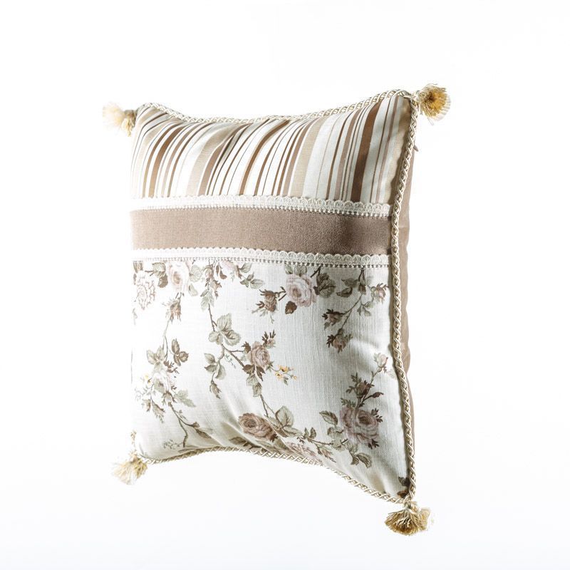 Оригинальная дизайнерская наволочка на подушку 45х45 см. Декорирована витым шнуром, ажурной тесьмой и кисточками. Потайная молния расположена в нижнем шве. Декоративные подушки сделают акцет на цветовой гамме Вашего помещения, подчеркнут особенности интерьерного стиля или тематику оформления. Внимание! Подушка-вкладыш или синтепон приобретаются отдельно.