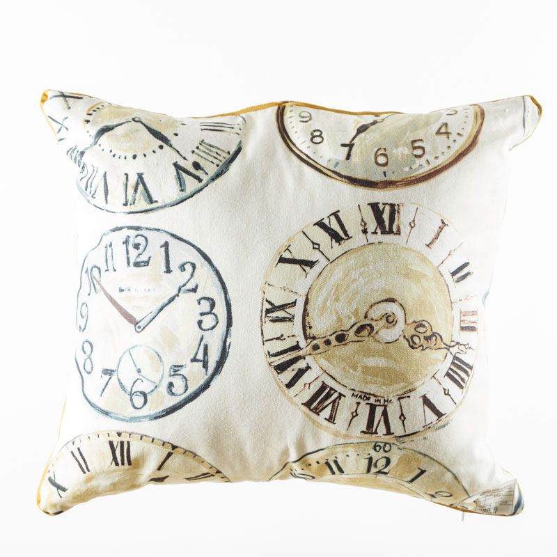 Оригинальная дизайнерская наволочка на подушку 50х50 см. Лицевая сторона выполнена из портьерной ткани с принтом "Часы" в желтых оттенках. Обратная сторона - фактурная ткань молочного цвета. Наволочка декорирована репсовым кантом в тон рисунка. Потайная молния расположена в нижнем шве. Декоративные подушки сделают акцет на цветовой гамме Вашего помещения, подчеркнут особенности интерьерного стиля или тематику оформления. Внимание! Подушка-вкладыш приобретается отдельно.