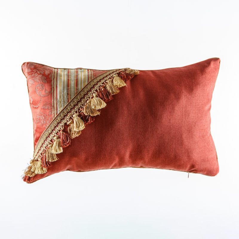 Оригинальная дизайнерская наволочка на подушку 60х40 см. Выполнена из жаккарда и льна и декорирована тесьмой, круглым кантом и бахромой. Потайная молния расположена в нижнем шве. Декоративные подушки сделают акцет на цветовой гамме Вашего помещения, подчеркнут особенности интерьерного стиля или тематику оформления. Внимание! Подушка-вкладыш или синтепон приобретаются отдельно.