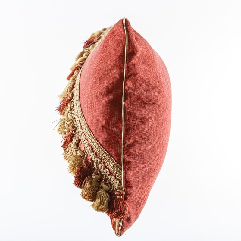 Оригинальная дизайнерская наволочка на подушку 60х40 см. Выполнена из жаккарда и декорирована тесьмой, круглым кантом и бахромой. Потайная молния расположена в нижнем шве. Декоративные подушки сделают акцет на цветовой гамме Вашего помещения, подчеркнут особенности интерьерного стиля или тематику оформления. Внимание! Подушка-вкладыш или синтепон приобретаются отдельно.