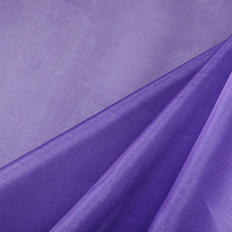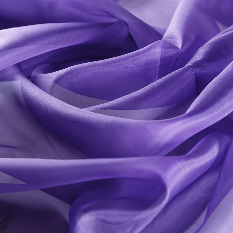 Шелковая невесомая органза с искрящейся поверхностью фиолетового оттенка. Ткань легкая, тонкая, пластичная, хорошо драпируется, просвечивает, отлично держит форму. Подойдет на блузку, платье, тунику или юбку на подкладе.