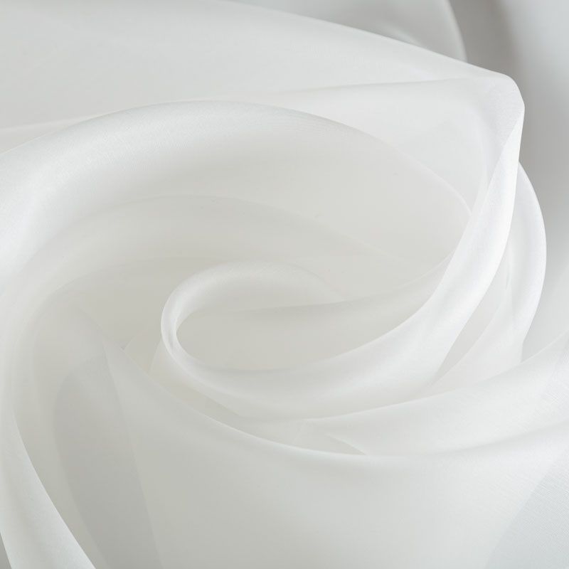 Шелковая невесомая органза с искрящейся поверхностью молочного оттенка. Ткань легкая, тонкая, пластичная, хорошо драпируется, просвечивает, отлично держит форму. Подойдет на блузку, рубашку, платье, тунику или юбку на подкладе.