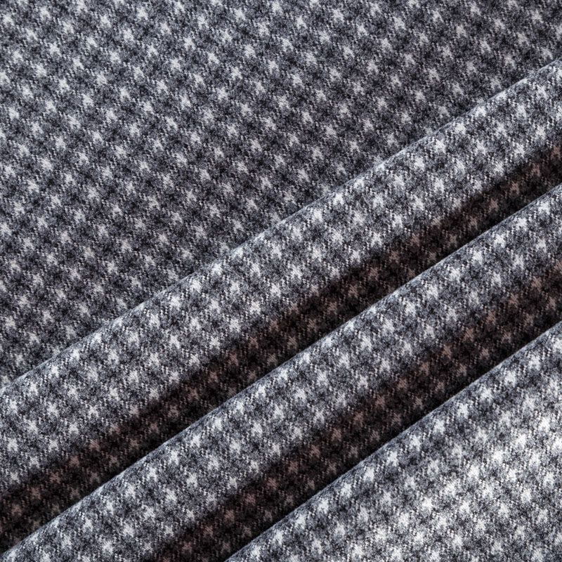 Плотный пальтовый трикотаж серого оттенка в мелкую черно-белую клеточку. Ткань очень приятная на ощупь, мягкая, пластичная, теплая и уютная. Прекрасно подойдет для пошива легких пальто, теплых жакетов, курток, кардиганов, юбок или шорт.