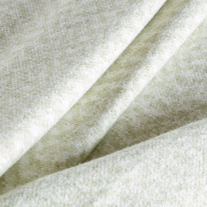 Плотный двухслойный пальтовый трикотаж белого цвета с геометрическим орнаментом светло-зеленого оттенка. Ткань очень приятная на ощупь, пластичная, теплая и уютная, поверхность мягкая и шелковистая. Изнанка однотонная молочного оттенка. Прекрасно подойдет для пошива пальто, теплых жакетов, курток, кардиганов, костюмов.