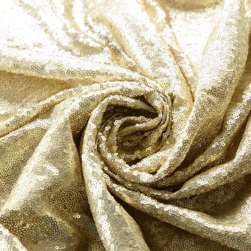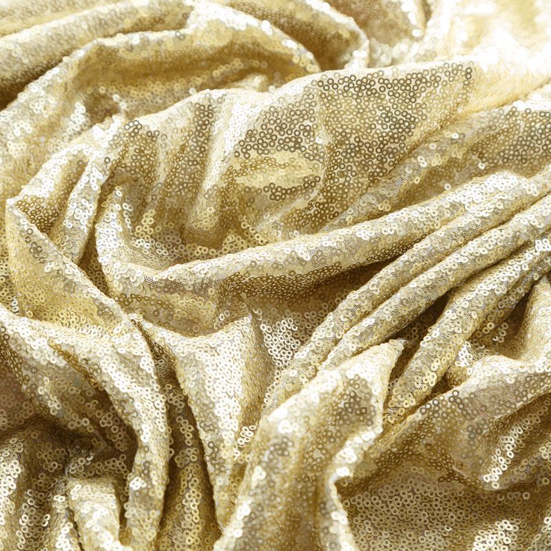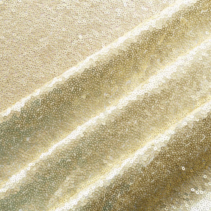 Блестящие пайетки в золотистом оттенке. Мелкие, размером около 3 мм, расположены в хаотичном порядке. Основа - мягкая и эластичная сетка. Ткань полупрозрачная, может потребоваться подклад. Подойдет для вечернего, коктейльного платья, юбки, нарядных детских изделий, танцевальных и сценических костюмов.