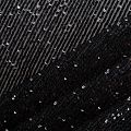 Тонкая эластичная сетка черного цвета расшита мелкими глянцевыми пайетками в тон основе, которые формируют полоски от кромки до кромки по ширине материала. Ткань очень хорошо драпируется, красиво переливается, пластичная и эластичная и в длину, и в ширину, благодаря чему изделия получаются комфортными и отлично сидят по фигуре. Пайетки — идеальный материал для праздников и вечеринок. Из них получится эффектное платье, жакет, боди, топ, туника, юбка или комбинезон.