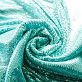 Блестящие пайетки в бирюзовом оттенке. Мелкие, размером около 3 мм, расположены в хаотичном порядке. Основа - мягкая и эластичная сетка. Ткань полупрозрачная, может потребоваться подклад. Подойдет для вечернего, коктейльного платья, юбки, нарядных детских изделий, танцевальных и сценических костюмов.