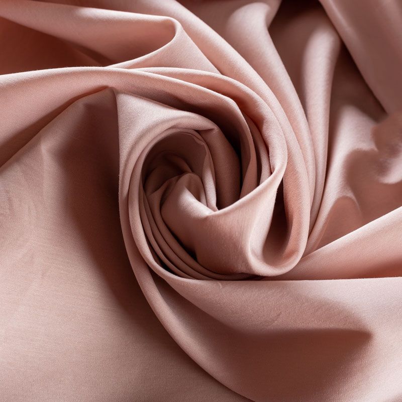 Однотонный плательно-рубашечный хлопковый поплин розовато-бежевого оттенка. Ткань лёгкая, слегка прозрачная, поверхность матовая, гладкая, приятная к телу, хорошо драпируется, тянется за счет эластана в составе. Прекрасно подойдет блузы, платья-рубашки, летнего сарафана, туники.