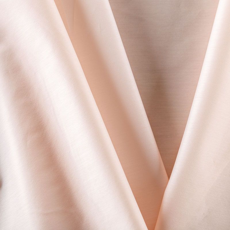 Однотонный плательно-рубашечный смесовый поплин светло-персикового оттенка. Ткань лёгкая, слегка прозрачная, поверхность матовая, гладкая, приятная к телу, хорошо драпируется, тянется за счет эластана в составе. Прекрасно подойдет блузы, платья-рубашки, летнего сарафана, туники.