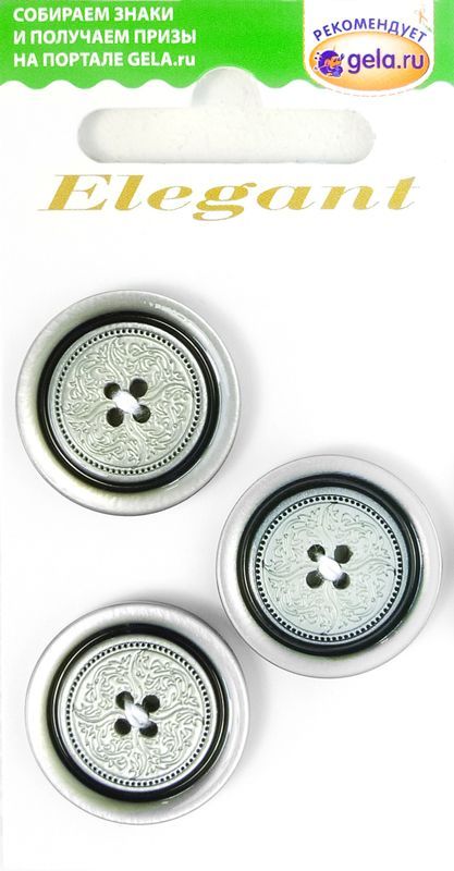 Серия пуговиц Elegant создана для оформления одежды классического стиля и стиля casual. Простота и лаконичность пуговиц на прокол в сочетании с технологиями обработки 21 века: лазерной гравировкой, эмалированием, фактурным матированием и тонкой прорисовкой узора. Повседневная элегантность для женщин и мужчин. Для женской одежды включает коллекции для блузок, платьев, жакетов, плащей, пальто. Для мужской одежды: для рубашек, жилетов, классических пиджаков, блейзеров, бушлатов, курток, тренчей, пальто. Пуговицы предлагаются сериями, вы можете подобрать пуговицы-компаньоны меньшего размера на лацканы и карманы.