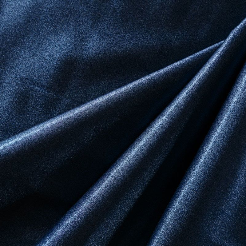 Итальянский сатин-коттон средней плотности в темно-синем оттенке с содержанием люрексовой нити. Поверхность ткань слегка шероховатая, с искрящимся блеском. Материал хорошо держит форму и драпируется, тянется за счет эластана в составе. Подойдет для пошива нарядных костюмов, платьев, жакета, юбки, брюк или шорт.