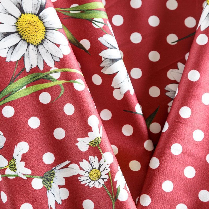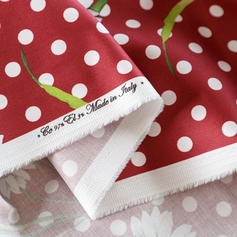 Сатин-коттон стрейч 063-06698 вишневый принтованный в Санкт-Петербурге