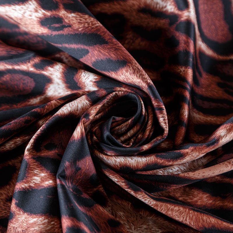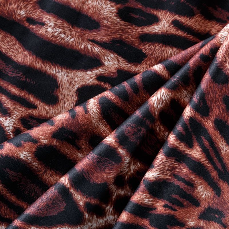 Итальянский сатин-коттон с анималистическим принтом в природных оттенках. Поверхность гладкая со сдержанным блеском, ткань средней плотности,  не толстая, хорошо держит форму, тянется за счет эластана в составе. Подойдет для пошива костюма, жакета, юбки, платья, брюк или шорт.