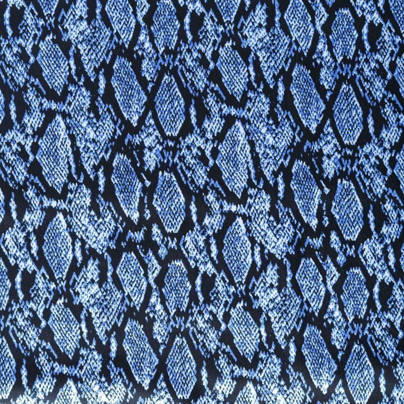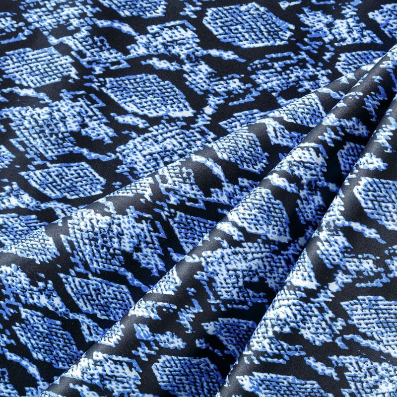 Сатин-коттон черного цвета со стилизованным анималистическим принтом, с гладкой поверхностью со сдержанным блеском, ткань средней плотности, не толстая, хорошо держит форму, тянется за счет эластана в составе. Подойдет для пошива костюма, жакета, юбки, платья, брюк или шорт.