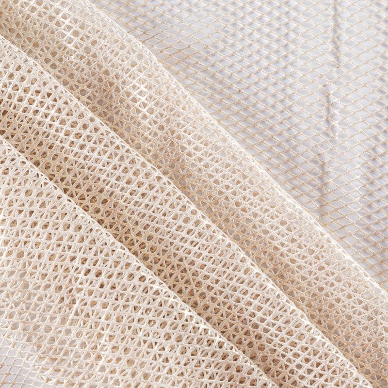 Рельефный полупрозрачный материал с сетчатой структурой. Поверхность полотна с металлизированным золотым напылением, которое придает материалу легкий блеск и мерцание. Полотно мягкое, растяжимое во всех направлениях. Сетки нашли свое применение в процессе пошива и последующего декора вечерних нарядов, свадебных платьев, спортивной одежды, театральных костюмов.