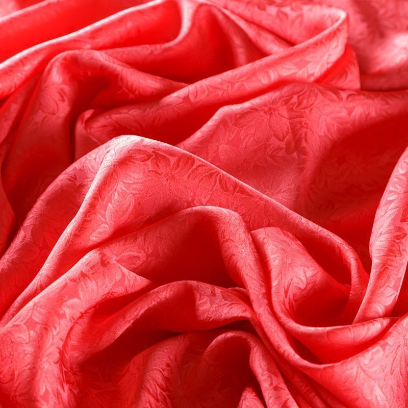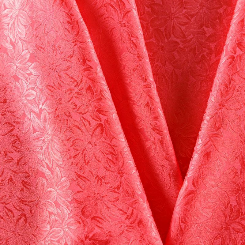 Итальянский шелк с жаккардовым цветочным узором в розовато-коралловом оттенке. Ткань тонкая, легкая, воздушная, хорошо драпируется и струится, не просвечивает. Подойдет для пошива блузы, рубашки, платья, юбки, костюма в пижамном стиле, топа.